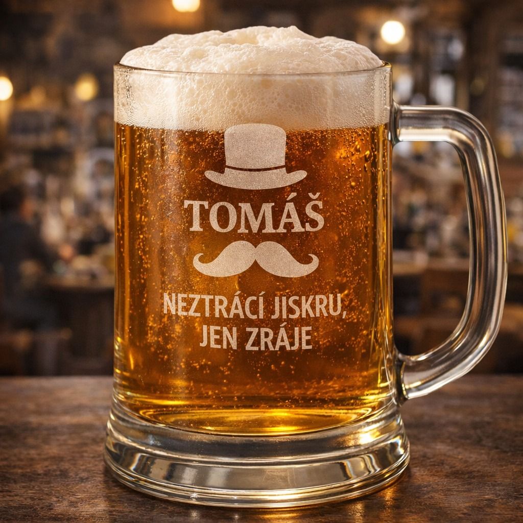 Standartní široký korbel 500ml s gravírovaným obrazem pomocí laseru.