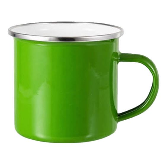 Klasický plechový, smaltovaný hrnek o objemu 300 ml (tzv. plecháček s nerezovým okrajem).