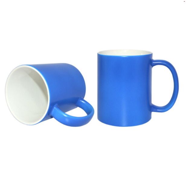 Hrnek , zářivá, fluorescenční barva, bílý vnitřek., potažený vrstvou polyesteru pro potisk.