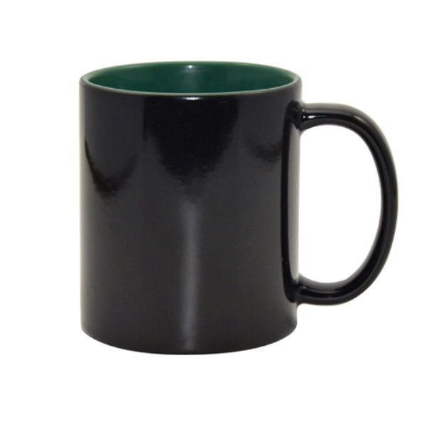 Černý keramický magický hrnek s BAREVNÝM VNITŘKEM třídy A+ je díky polyesterové vrstvě ideální na sublimaci.